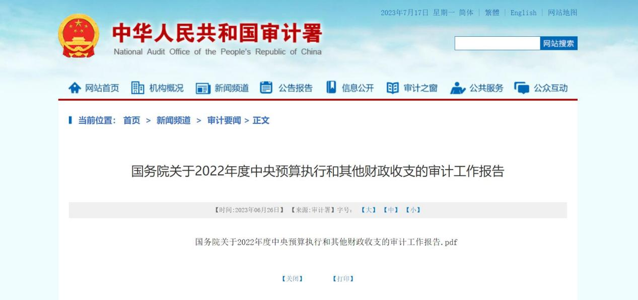 国家审计署发布审计报告